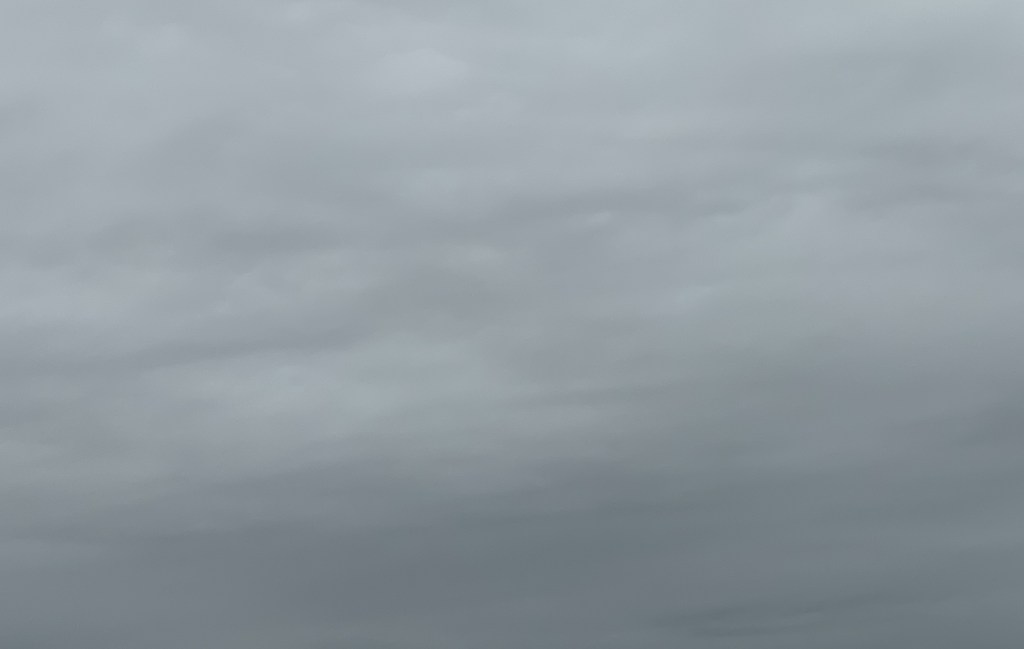It doesn’t look cloudy. Just a grey-white blanket. It’s not a storm. Rain is just there, not pouring or even sprinkling, just ever present in the air. Everything is covered and touched by the haze. Just a nothingness. No sunrise or sunset. The light will just gradually cease to exist.